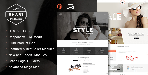 Smart Eye Glasses Magento Responsive Theme is specially designed for sunglass, eyeglass, electronics, shoes, jewellery, cosmetic, fashion designer, furniture, kids and Multipurpose stores. Smart Eye Glasses Magento Theme is looking good with colors combination and layout. All sub pages are customized. It is very nice with its clean and professional look.