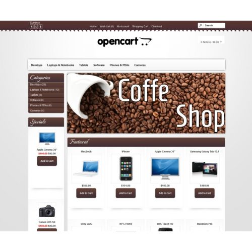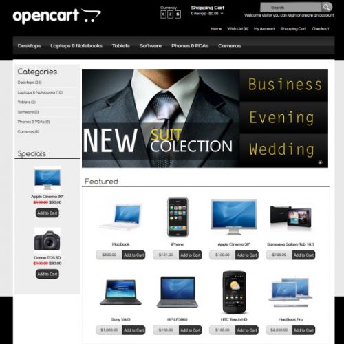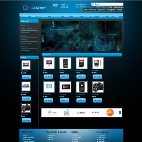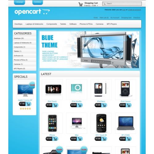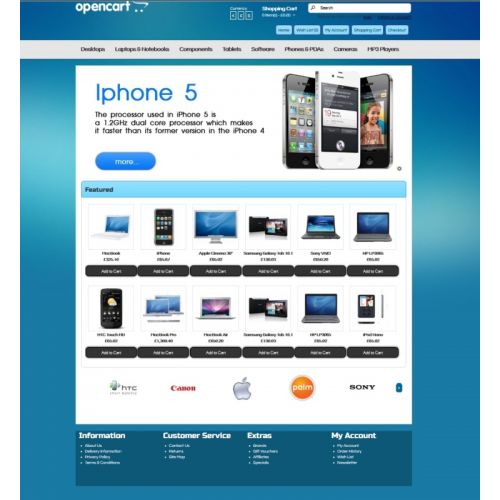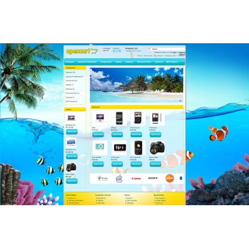 Diving Store OpenCart Template is specially designed for diving`s products. Garmonical colors combination of cyan and black with white background is the best decorate for Computers Consoles, Regulators Cylinders, BCD Gilletes, Wetsuits, Fins, Masks Snorkel. It is very nice with its clean and professional look. Compatible with OpenCart : v1.5.2.1