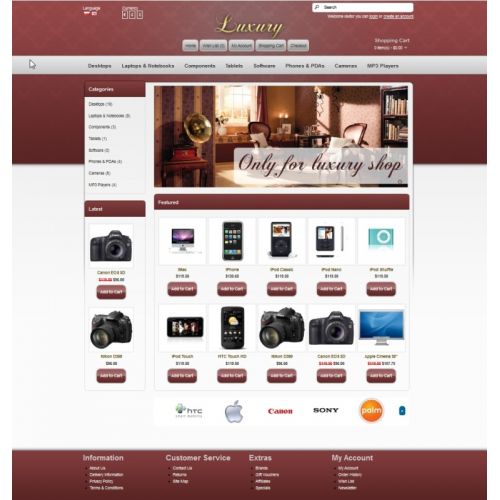 Suitable for any purpose online shop such as luxury shop, professional shop, fashion, garment, accesories, wedding dress online shop, jewellery shop, kids and baby shop, toys shop, sweet shop, online shop for women or else. Luxury Retro Stylize opencart template with exclusive and elegant style. Compatible with OpenCart : v1.5.5.1