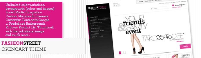 Althaina is a Free OpenCart Theme for any kind of shop with stylish modern design and it’s created with using the latest HTML5 and CSS3 features.The admin panel is intended to allow you to easily manage colors of theme elements, select 600+ amazing fonts, apply unlimited patterns or backgrounds and setup hundreds of theme settings and effects.The quickstart package will help you save much time of installing and configuring.