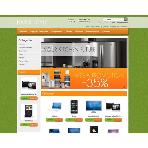 - Simplissimo Control Panel controlled by the admin area, allows you to set styles, show or hide currency and language