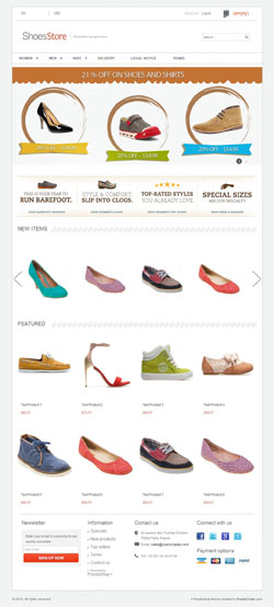 Shoes Prestashop Theme was created to be used for shoes, bags shops powered by Prestashop. With a simple design, this theme it will make your customers focus on your products more then on any other template. The design is simplistic and draw attentions on your shop products, which means there will be more sales on your shop, using this theme.