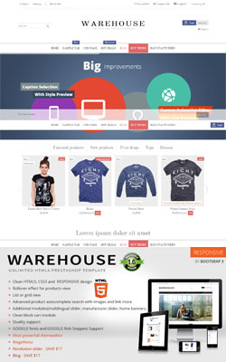 Warehouse utilizes many advanced modules and modifications like(rollover images, clean cart, sliders, autocomplete, dialogs). Theme is SEO friendly and is Cross Browser compatible, it’s based on prestashop default Bootstrap theme.